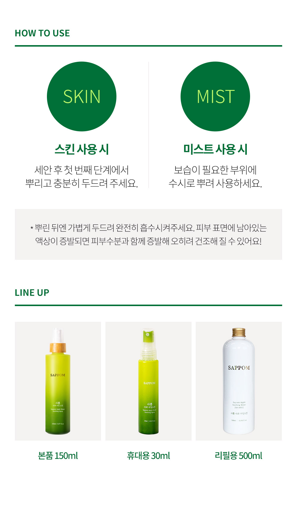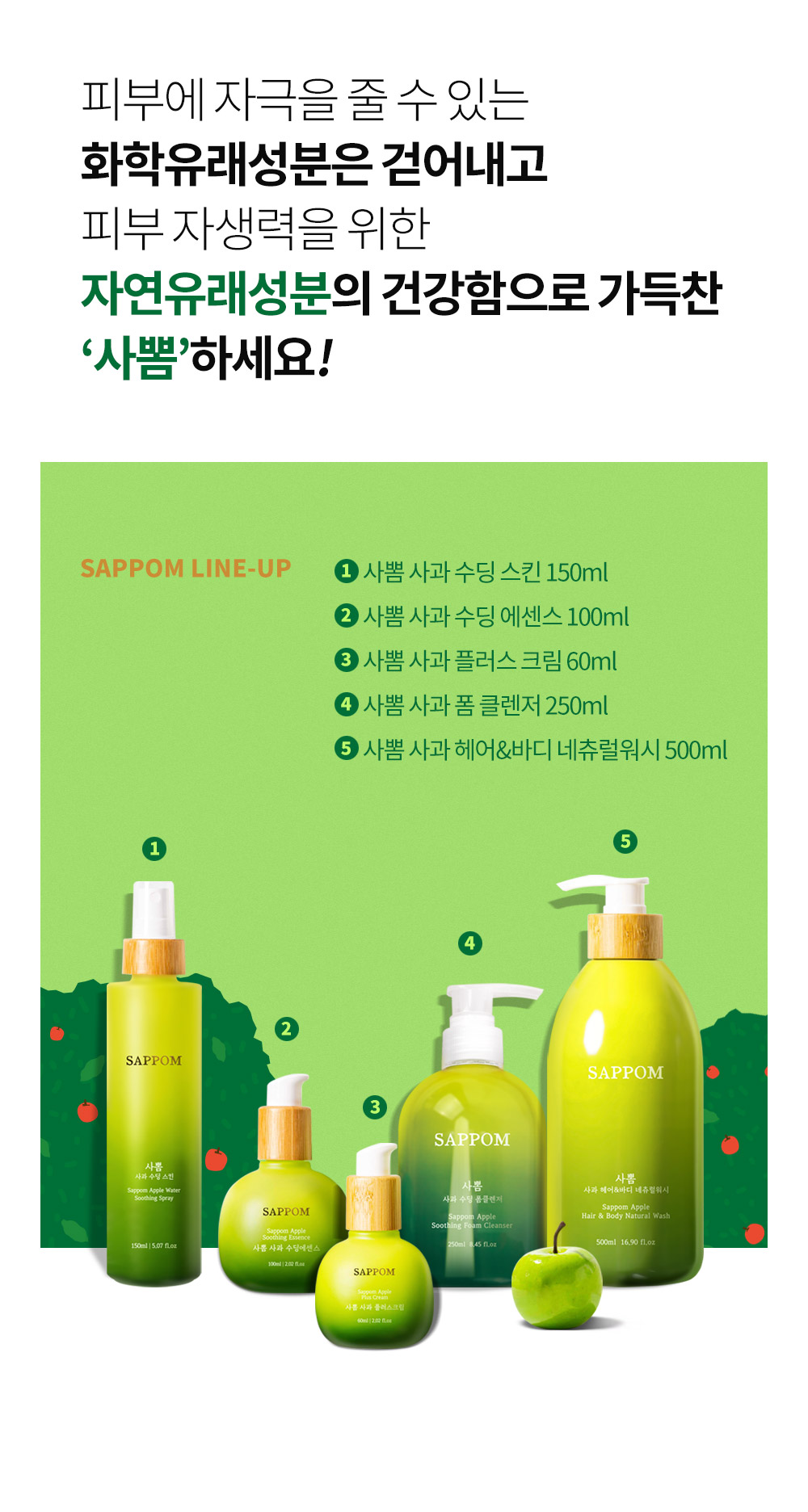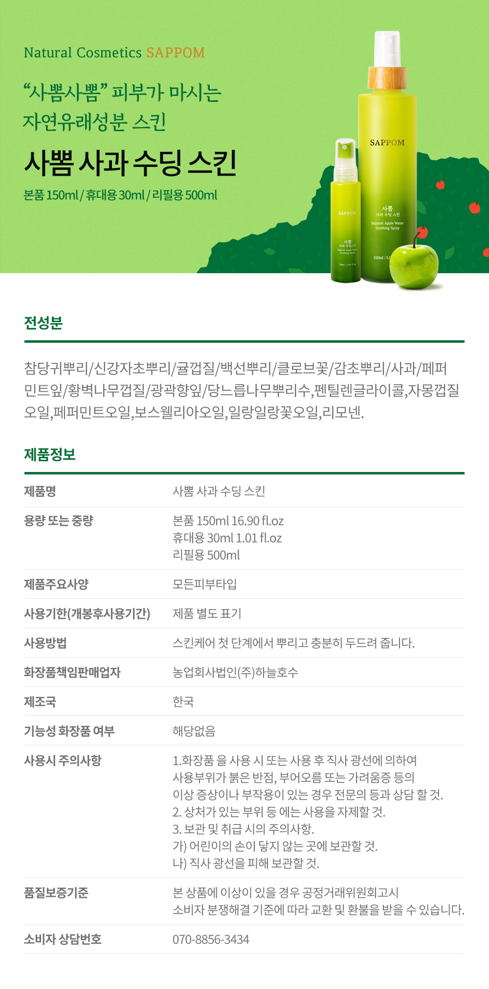 사뽐 사과 수딩스킨 150ml, 리필 500ml